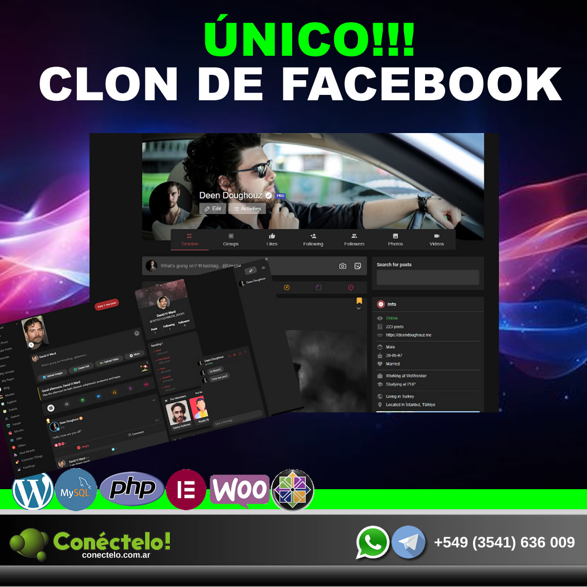 Páginas – Grupos – Eventos – Blogs – Marketplace – Ofertas – Trabajos – Foros – Películas – Juegos – Emojis – Historias – Anuncios – Billetera – Packs Pro – Donaciones – Desarrolladores – Reportes – Lista negra – Recuerdos – Verificación – Generador de usuarios – Páginas estáticas- Post coloreados – Widgets – Gifts – y Mucho mas!